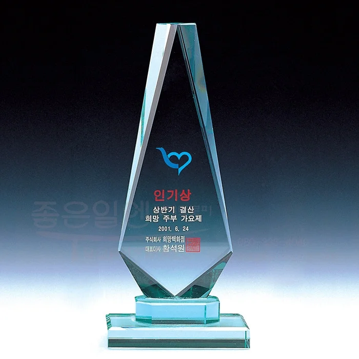 제조사좋은일엔상패트로피사이즈9*22*6cm재질크리스탈(pb0 24% 이하) 사출 및 옵티칼글라스배송비무료배송배송방법택배 / 퀵 서비스 / 방문 수령 가능시안제작 시간2시간~15시간제품제작 시간2시간~15시간문안제작 방법샌딩(음각) 후 페인팅