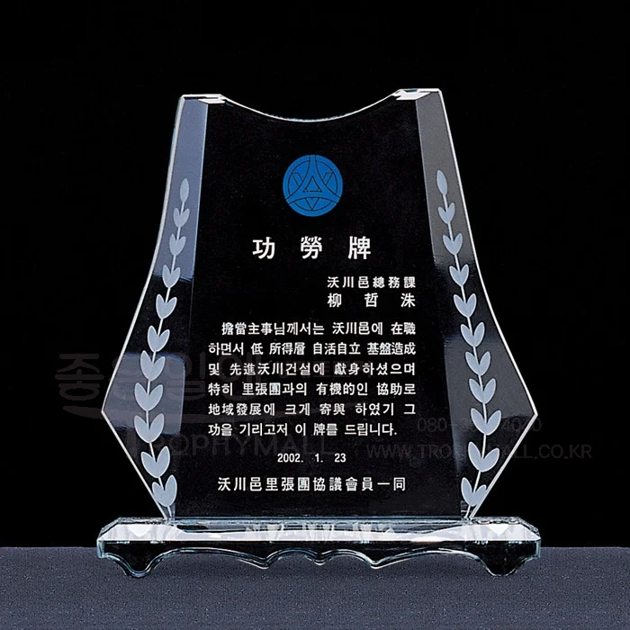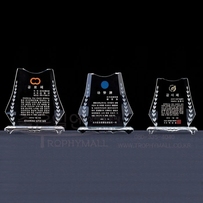 - 상패 상단에 월계수를 기본 배치 했으며, 미려한 균형미를 갖춰 어떻한 행사에도 잘 어울리도록 제작 가능