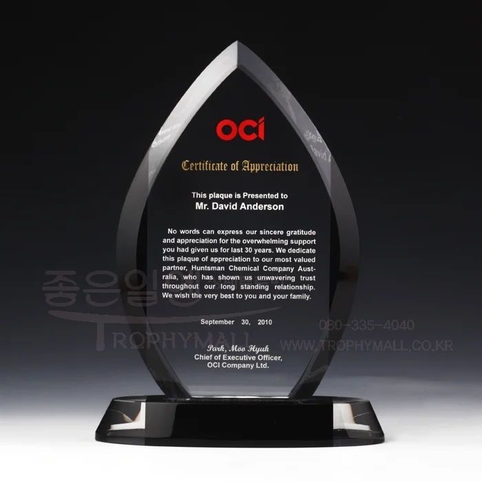 크리스탈상패 DC20004의 문안 제작 과정을 안내해 드립니다.
