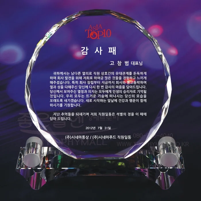 크리스탈상패 DC20036의 문안 제작 과정을 안내해 드립니다.