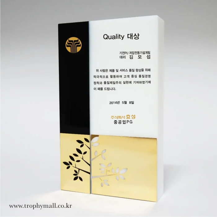 - 블랙크리스탈과 화이트크리스탈에 나무형상의 금속 스카시를 조합한 상패 입니다.