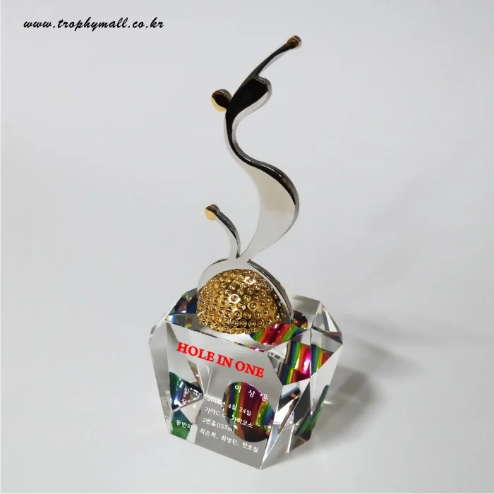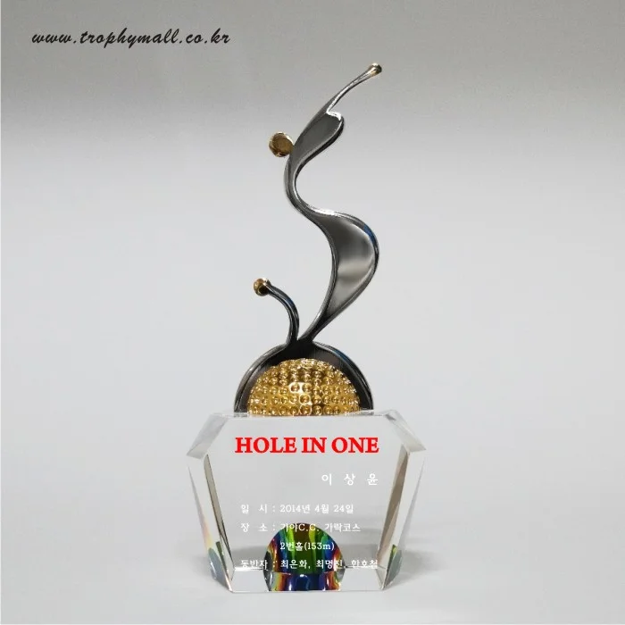 - 화이트 크리스탈과 금속 조형물을 스윙모션로 형상화한 역동적으로 표현한 트로피 입니다.