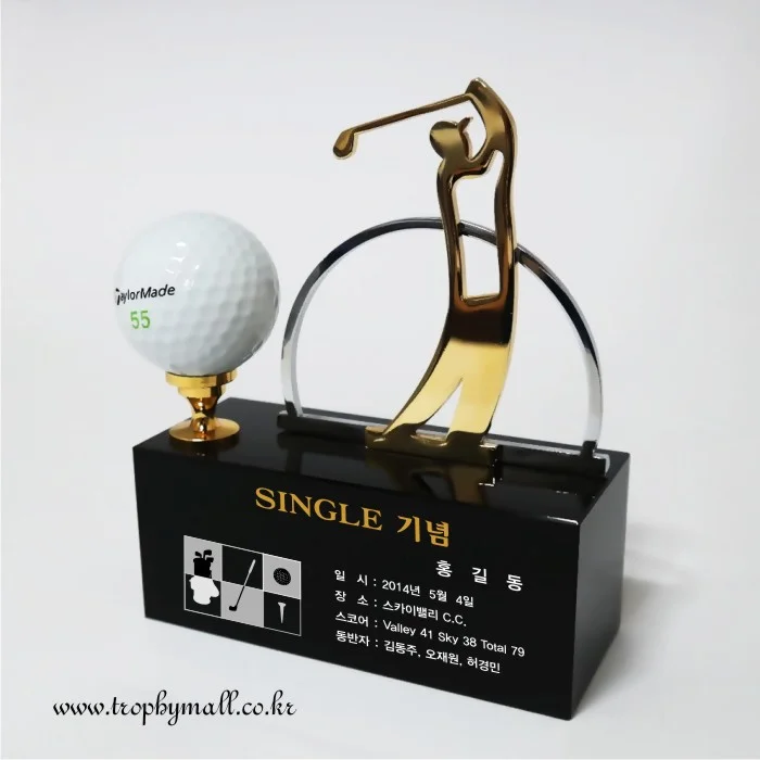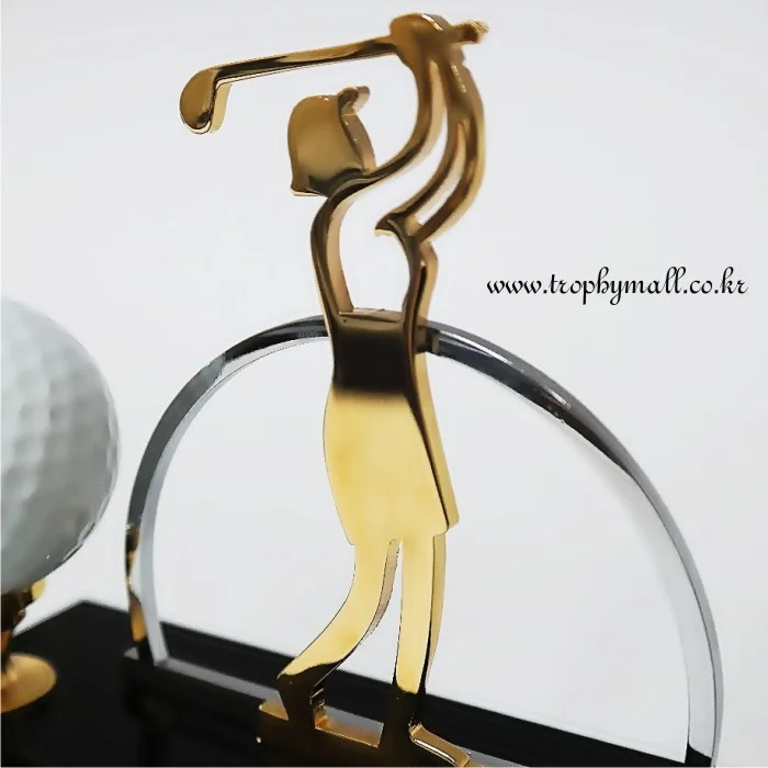 - 화이트 크리스탈과 금속 조형물을 스윙모션로 형상화한 역동적으로 표현한 트로피 입니다.