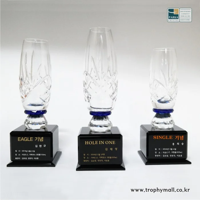 - 크리스탈 수공예 조각 컵과 블랙크리스탈 받침으로 이루어진 트로피 입니다.