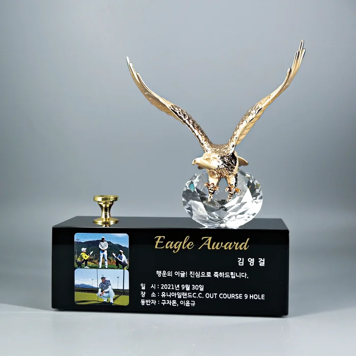 - 블랙크리스탈과 골드독수리의 조합으로 깔끔하고 고급스러운 트로피 입니다.