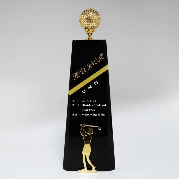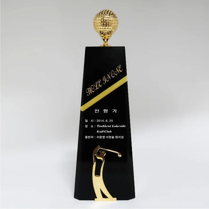 - 블랙크리스탈과 옐로우 띠가 조합된 기념트로피 입니다.