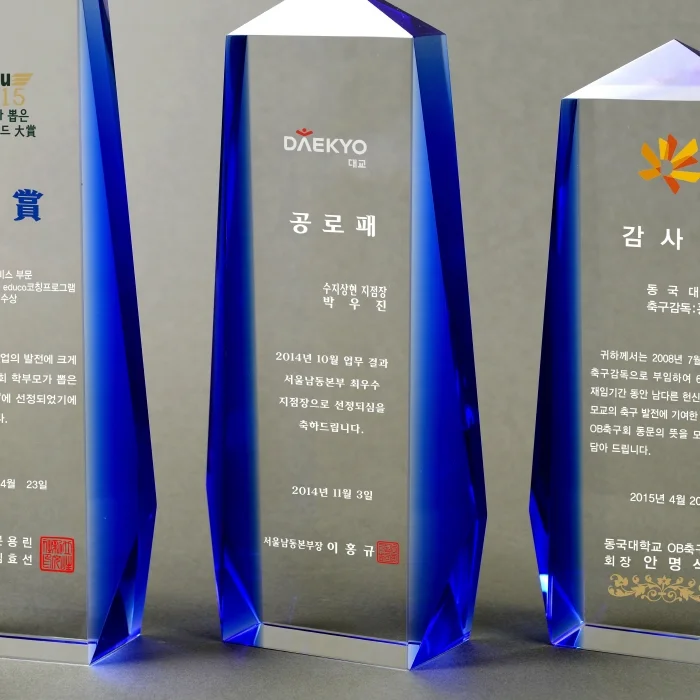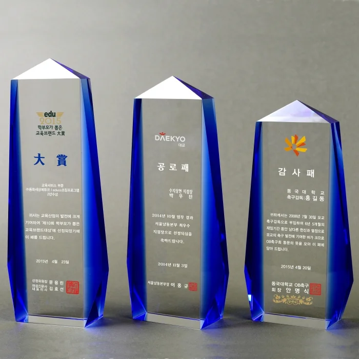 -코발트색상의 크리스탈 상패 은은한 코발트 빛이 멋스러운 제품