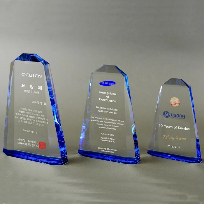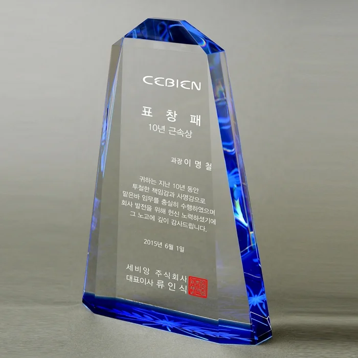 -코발트색상의 크리스탈 상패 은은한 코발트 빛이 멋스러운 제품