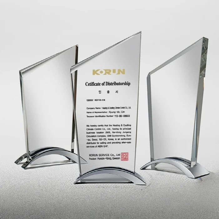 - 크리스탈 상패에 하단 금속 받침을 접목한 심플한 제품입니다.