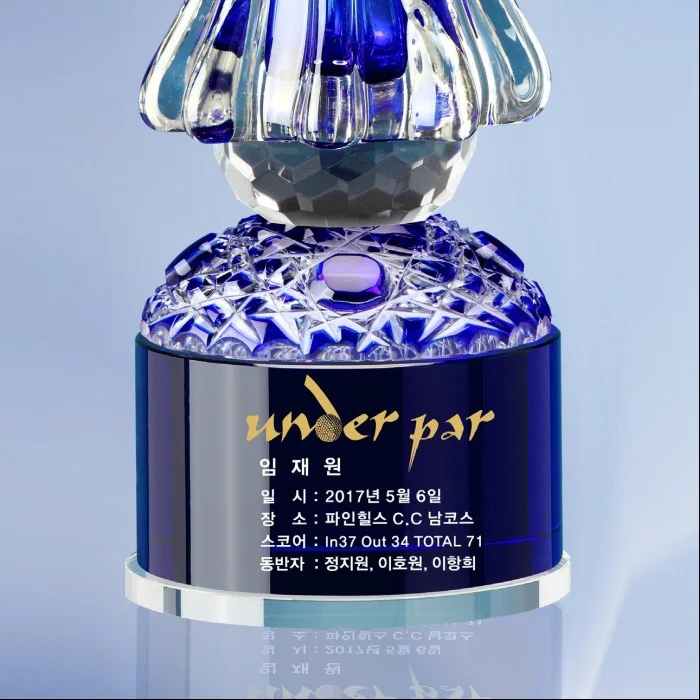 제조사좋은일엔상패트로피사이즈12.5*37*11.5cm재질크리스탈(pb0 24% 이하) 사출, 옵티칼글라스배송비무료배송배송방법택배 / 퀵 서비스 / 방문 수령 가능시안제작 시간2시간~15시간제품제작 시간15시간~48시간문안제작 방법샌딩(음각) 후 페인팅