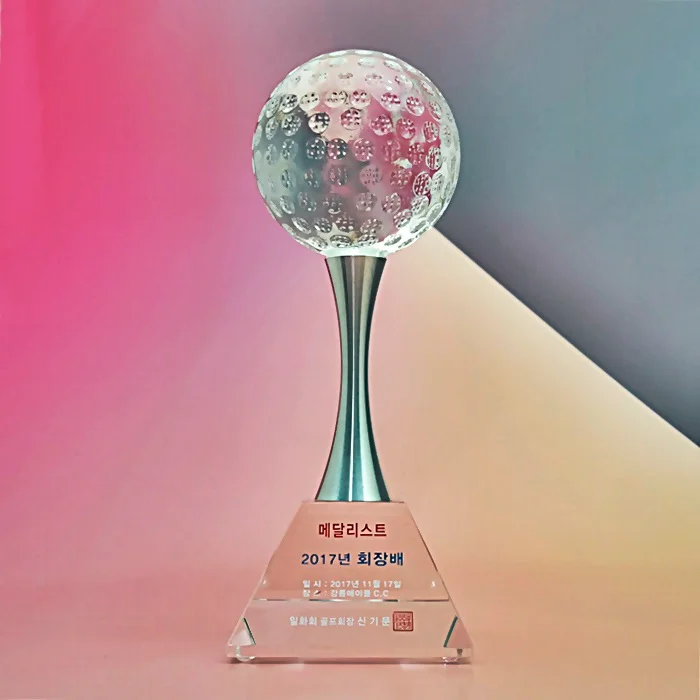 - 골프공 모형의 크리스탈 트로피 입니다.