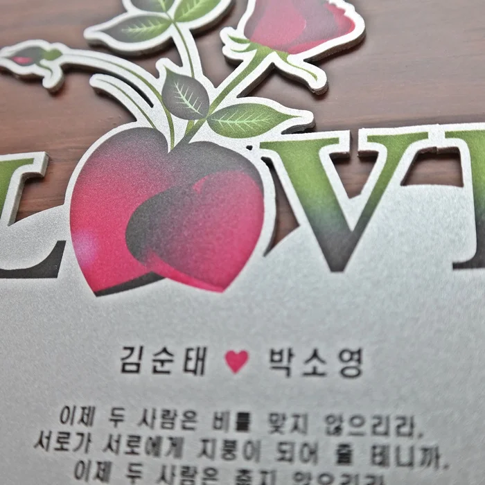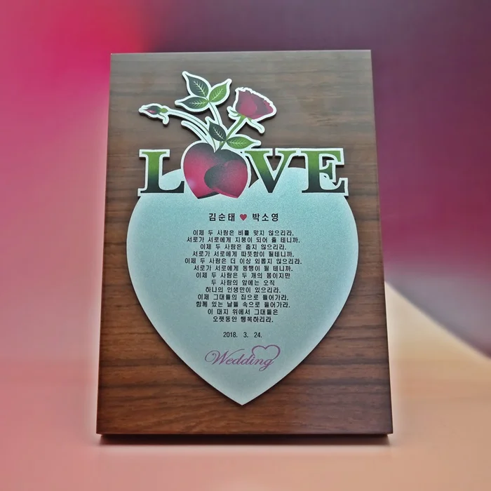 - 나무뒷판에 아크릴 레이저 조각 도장판 접목