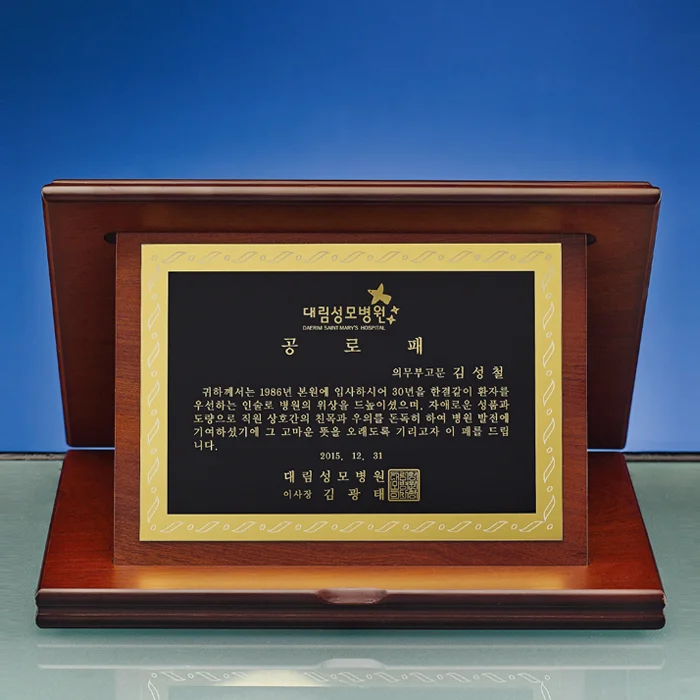 제조사좋은일엔상패트로피사이즈중(가로 20cm x 세로 16.5cm)대(가로 23.5cm x 세로 19.5cm)재질나무 재질 틀에 메탈판 레이져 가공배송비무료배송배송방법택배 / 퀵 서비스 / 방문 수령 가능시안제작 시간2시간~15시간제품제작 시간15시간~48시간문안제작 방법레이져 작업