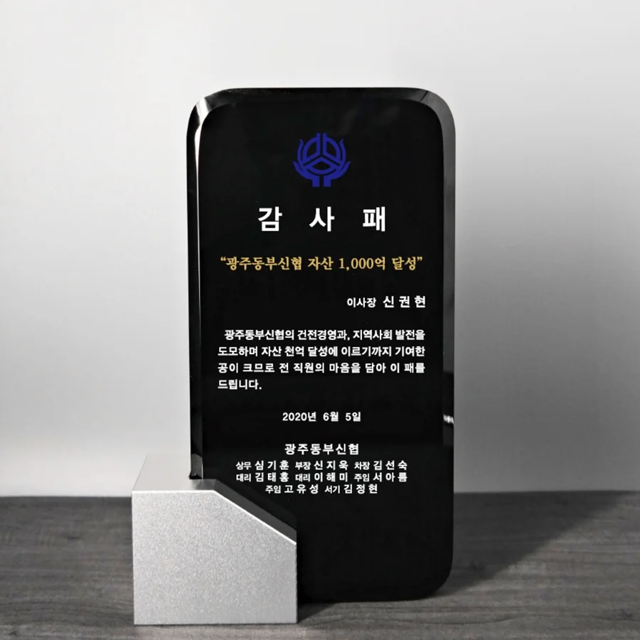- 블랙크리스탈 상패이며, 받침은 알루미늄 아노다이징 처리되었습니다.