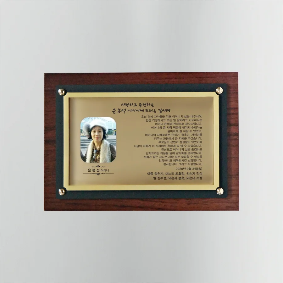 제조사억불산업사이즈17*24*3cm재질나무, 금속인쇄판배송비무료배송배송방법택배 / 퀵 서비스 / 방문 수령 가능시안제작 시간2시간~15시간제품제작 시간15시간~48시간문안제작 방법인쇄