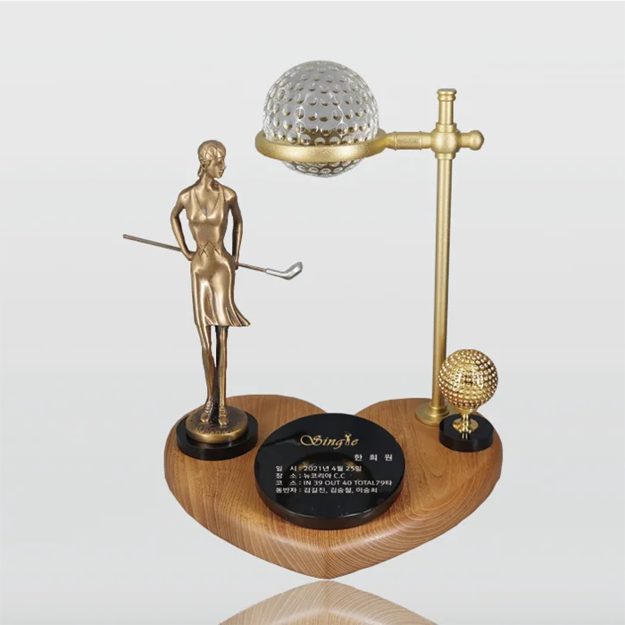- 황동 골프모션과 블랙크리스탈 문안판 하단 받침은 원목입니다.