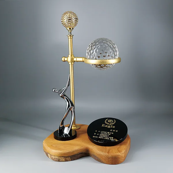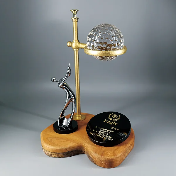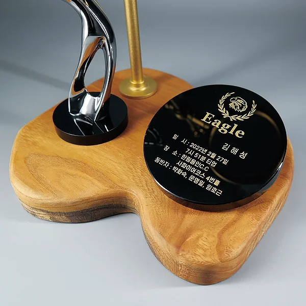 - 크롬 골프모션과 블랙크리스탈 문안판 하단 받침은 원목입니다.