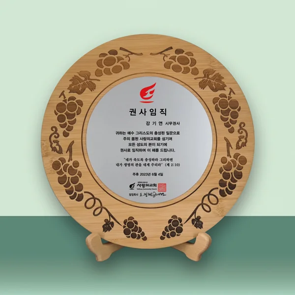 제조사좋은일엔상패트로피사이즈280∮(28cm)재질천연 대나무 원목, 금속 애칭판배송비무료배송배송방법택배 / 퀵 서비스 / 방문 수령 가능시안제작 시간2시간~15시간제품제작 시간15시간~48시간문안제작 방법실크인쇄